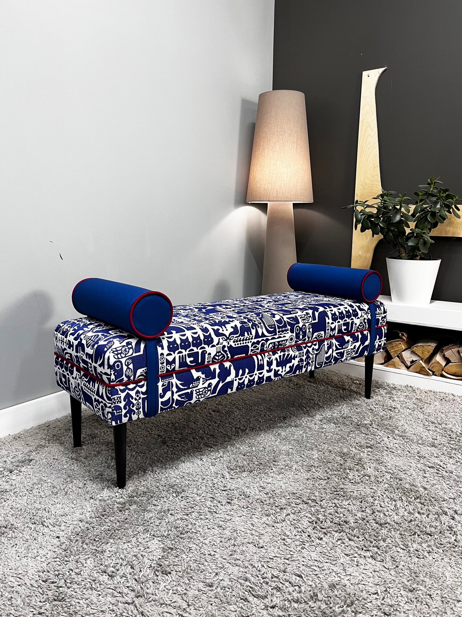 Купить Банкетка BORDADO SAMANTA, мебельная фанера, велюр/гобелен, принт «финский» синий, съемные валики. с доставкой по всей России.