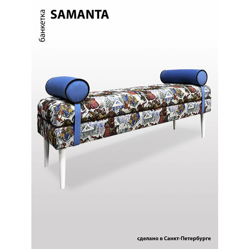 Банкетка BORDADO SAMANTA, мебельная фанера, велюр/гобелен, принт «Зима», голубой, съемные валики.: сравнение цен, характеристики, фото, актуальное наличие и цены.