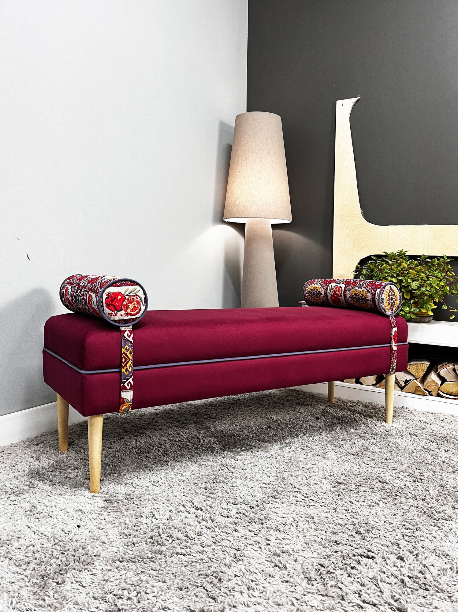 Банкетка BORDADO SAMANTA, мебельная фанера, велюр/гобелен, цвет «Грузия + винный», съемные валики.: сравнение цен, характеристики, фото, актуальное наличие и цены.