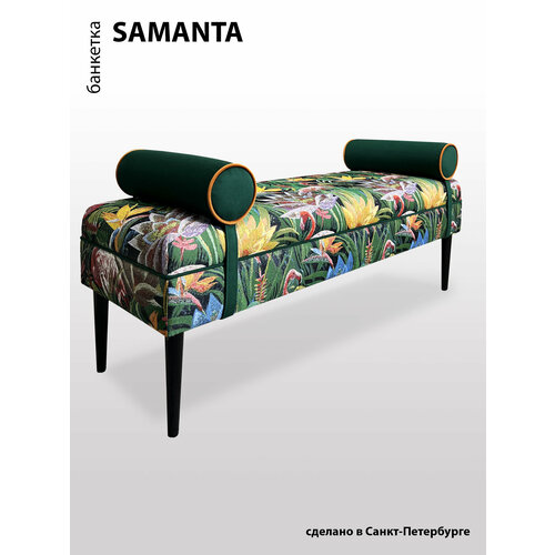 Эта красочная банкетка станет стильным дополнением вашего интерера. Съемные валики на липучке позволяют регулировать комфорт посадки и дизайн банкетки. Декорирована контрастным кантом. Прочный каркас из березовой фанеры, гарантирует долговечность в использовании и экологичность изделия, что позволяет использовать банкетку в детских комнатах. Наполнитель - высокоэластичный ппу высотой 40мм обеспечивает среднюю жесткость посадки, а березовые ножки высотой 22см с фетровыми накладками уберегут ваш пол от царапин.
