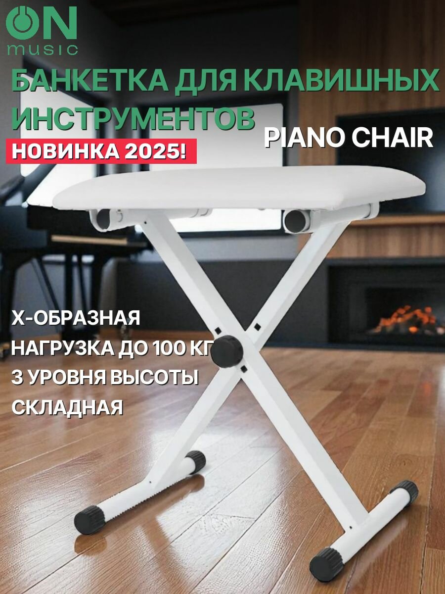 Банкетка для клавишных инструментов ON Music Piano Chair, белая: сравнение цен, характеристики, фото, актуальное наличие и цены.