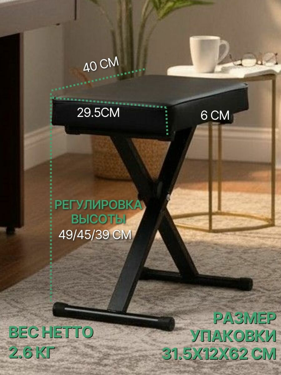 Банкетка для пианино с регулировкой высоты и отсеком для хранения