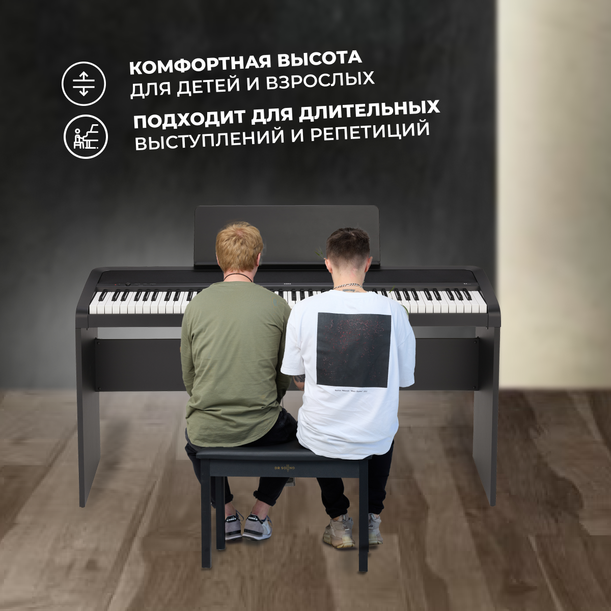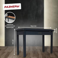 Двойная банкетка для пианино - необходимый аксессуар для комфортного музицирования. Она подойдет для любого музыкального инструмента: рояля, пианино, фортепиано или синтезатора. Стул для пианино или рояля обеспечить правильную посадку, что непосредственно влияет на качество игры, так как правильно подобранная высота снизит нагрузку на спину и позволит поставить кисть в правильное положение. Удобный и прочный стул для пианиста высотой 54 см обеспечивает комфортную посадку, не мешает движению рук и дает легкость управления педалями. Обивка стула для рояля выполнена из мягкой экокожи и обеспечивает комфорт во время игры. Размеры сидения: 70.5х33х4 см. Каркас пуфика - металлический, что делает его устойчивым, даже для самых эмоциональных музыкантов. Деревянная банкетка имеет отсек для хранения нот, перчаток и других музыкальных аксессуаров. Другие наши банкетки для пианино имеют 3 расцветки: черная, белая и коричневая и станут отличным подарком для начинающих и профессиональных музыкантов. Подходят также в качестве подарка для ребенка в музыкальную школу.