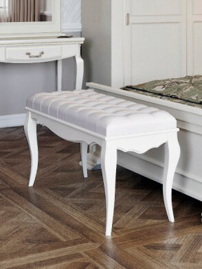 Купить Банкетка Ля Нэж скамья прикроватная Прованс белые деревянные ножки обита бархатной тканью с доставкой по всей России.