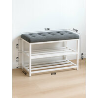 Компактная узкая пуф банкетка шириной 72 см и глубиной 27 см с полками для хранения обуви в два яруса не занимает много места и впишется не только в маленьком коридоре, но и прекрасно будет смотреться в интерьере гостиной, ванной комнате, детском саду, на кухне и балконе. Современный стиль лофт придает особый шарм в спальне у прикроватной зоны у кровати и туалетного столика, а универсальная расцветка позволит установить галошницу в кабинете офиса вместо офисных скамеек в зале ожидания, заменит простой и обычный обувной стеллаж в кладовой и гардеробной системе, стойку или подставку в примерочной или ПВЗ. На летнее время можно поставить вместо лавочки для отдыха на веранду или террасу на даче.