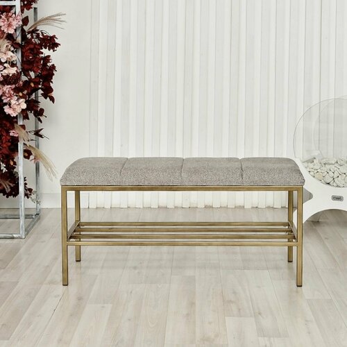 размер полки: от пола до полки 12.5см. Сама полка 19.5см. Банкетка-обувница в прихожую размером 90х35х39 см — идеальное сочетание компактности и функциональности. Прочный металлический каркас выдерживает до 200 кг и гарантирует долгий срок службы, а общий вес изделия (14 кг) позволяет легко переставлять банкетку при необходимости. Верхнее мягкое сиденье обито благородным бронзовым велюром LANA80: материал плотный, устойчивый к истиранию и приятный на ощупь, не теряет насыщенный цвет даже при интенсивном использовании.