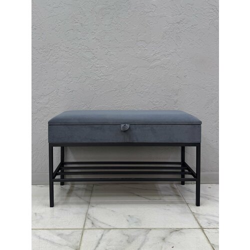 размер полки: от пола до полки 12.5см. Сама полка 19.5см. Банкетка в прихожую с мягким сиденьем, скрытым ящиком и металлическими полками сочетает в себе функции обувницы и удобного места для сидения. Под крышкой расположен вместительный отсек, куда легко убрать несколько пар обуви и аксессуары вроде перчаток или зонтов.
