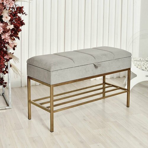 Нижние полки позволяют держать повседневную обувь под рукой, сохраняя порядок в прихожей. Сиденье обито мягким велюром: оно приятно на ощупь, хорошо переносит ежедневное использование и легко очищается. Прочный металлический каркас обеспечивает устойчивость, а универсальный дизайн подходит для большинства интерьеров.
