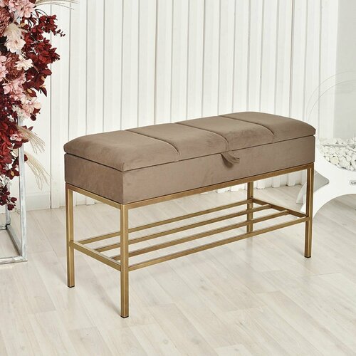 Нижние полки позволяют держать повседневную обувь под рукой, сохраняя порядок в прихожей. Сиденье обито мягким велюром: оно приятно на ощупь, хорошо переносит ежедневное использование и легко очищается. Прочный металлический каркас обеспечивает устойчивость, а универсальный дизайн подходит для большинства интерьеров.