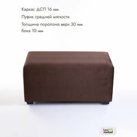| Дополнительная информация | Банкетка в прихожую из антивандального велюра с ПВХ ножками (можно заменить на любые другие). В 37; Ш 36; Д 72. Благодаря своим габаритам отлично подойдет как: банкетка в спальню или пуфик для ног. Выдерживает нагрузку до 130 кг. |