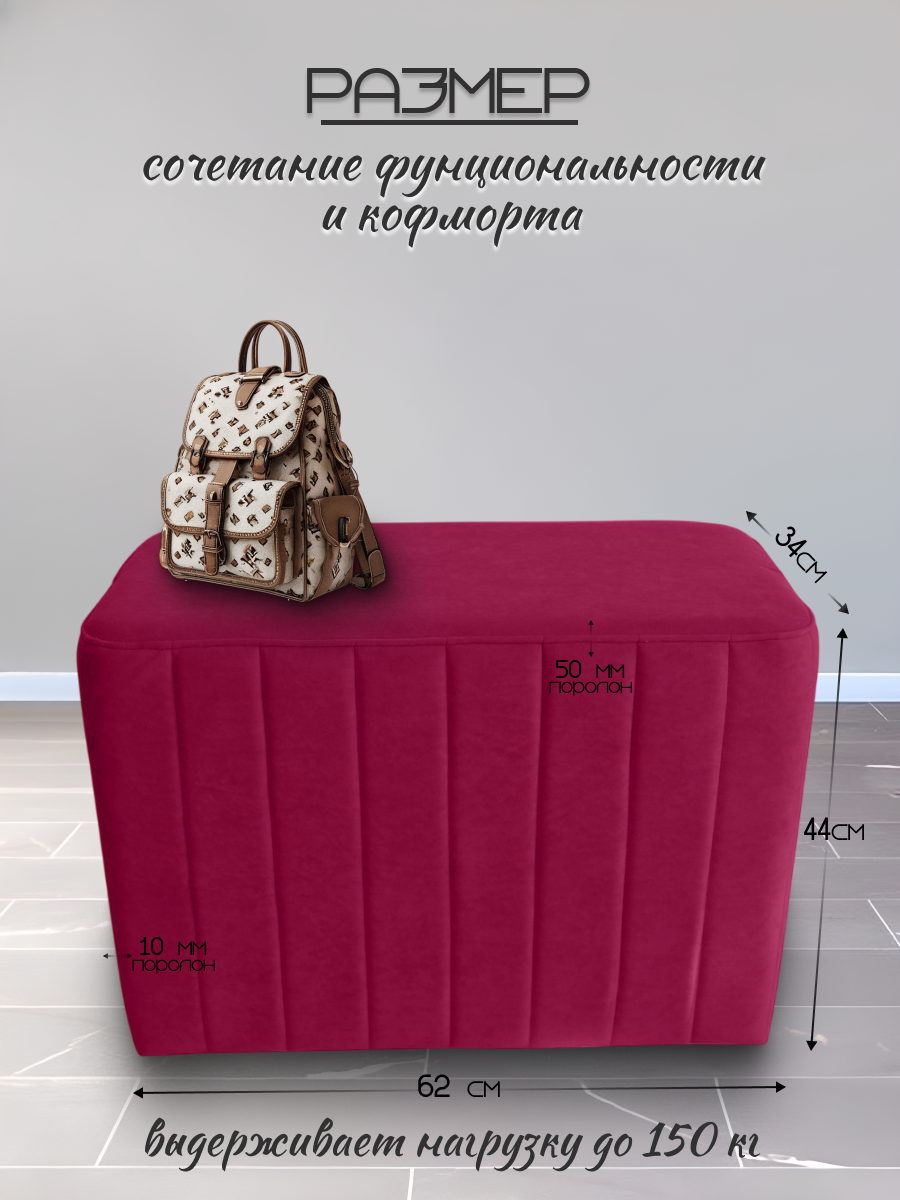 Банкетка пуфик в прихожую и спальню Davidoff-Pro, 62х34х44 велюровый прямоугольный: сравнение цен, характеристики, фото, актуальное наличие и цены.
