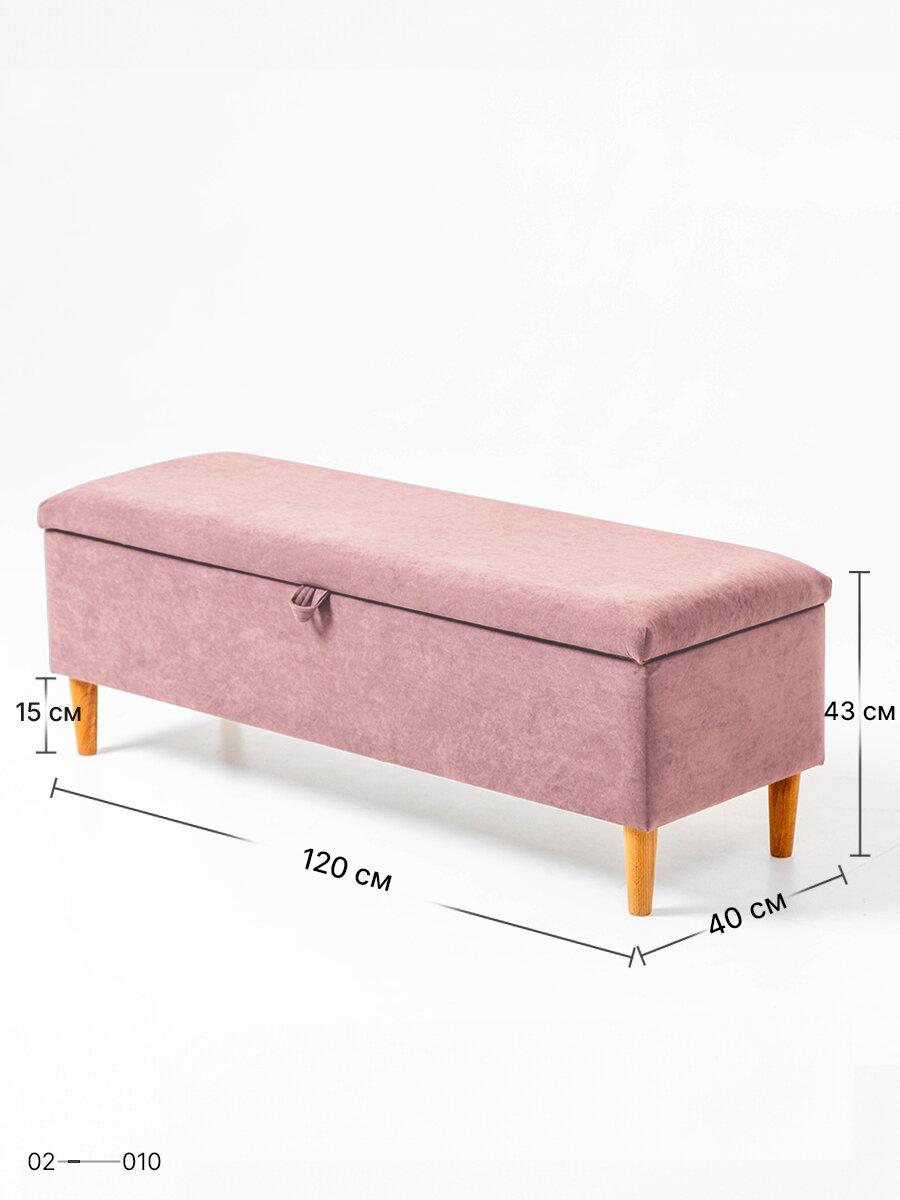 Купить Банкетка пуфик в прихожую с ящиком для хранения «Лайт», велюр розовый, 120х40х44см с доставкой по всей России.