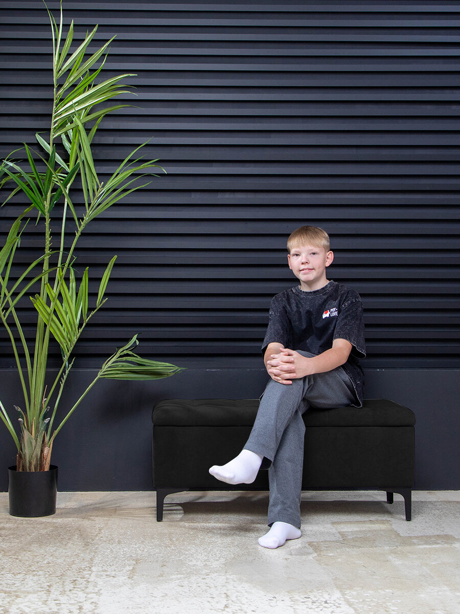 Купить Банкетка-пуфик в прихожую с ящиком для хранения «Лонг», велюр черный ,80x40x43. На кухню, балкон, офис и салон красоты. с доставкой по всей России.