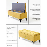 Купить Банкетка-пуфик в прихожую с ящиком для хранения «Лонг», велюр горчичный,100x40x43. На кухню, балкон, офис и салон красоты. с доставкой по всей России.
