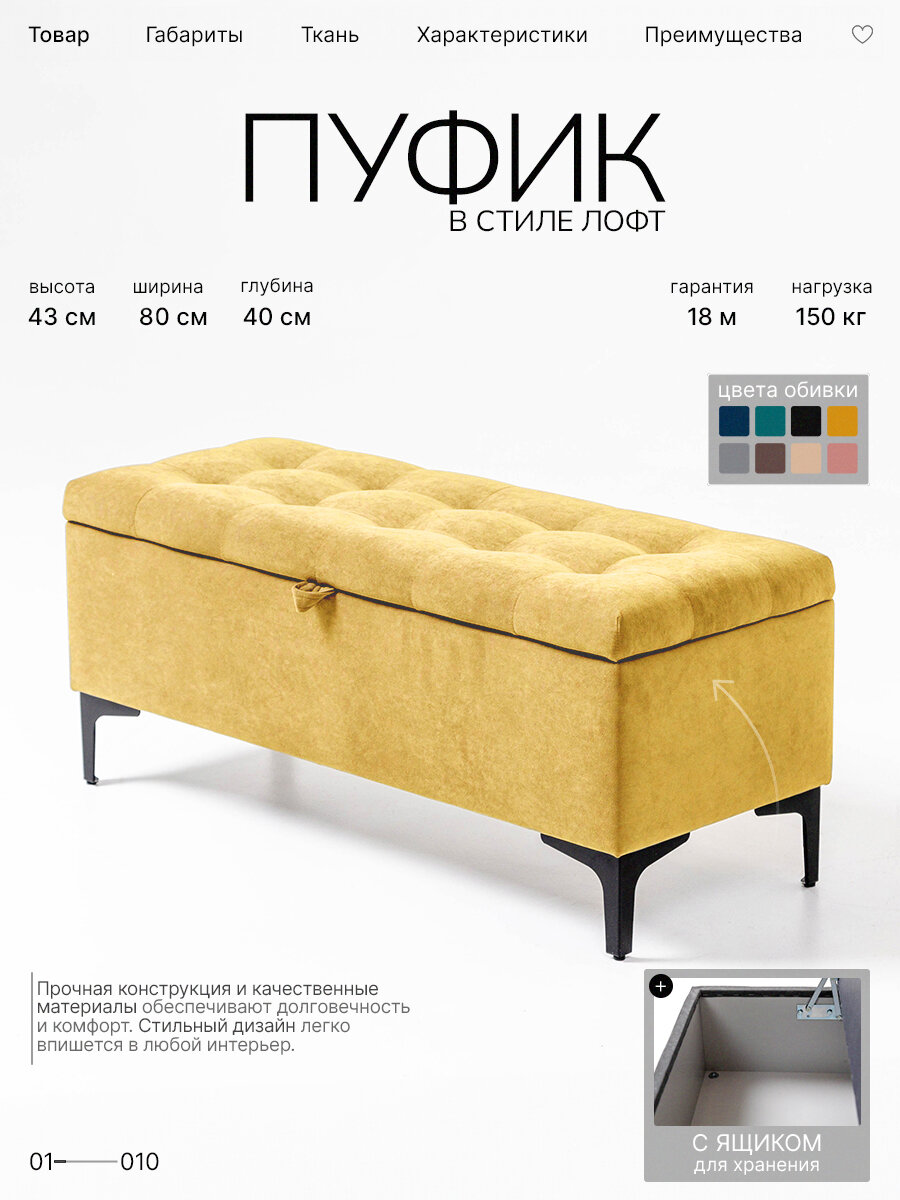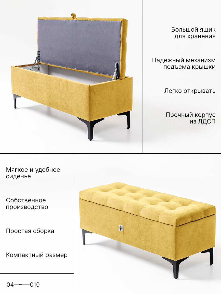 Банкетка-пуфик в прихожую с ящиком для хранения «Лонг», велюр горчичный,100x40x43. На кухню, балкон, офис и салон красоты.: сравнение цен, характеристики, фото, актуальное наличие и цены.