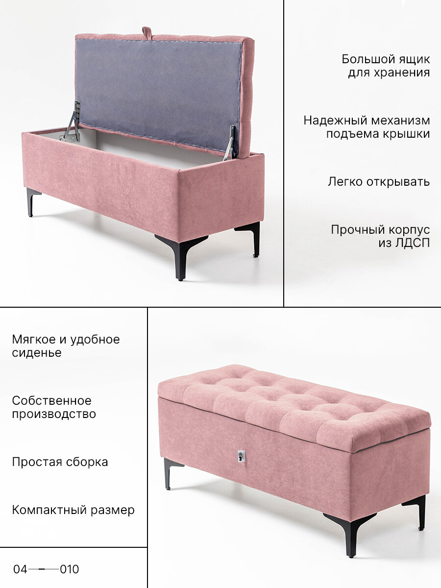Банкетка-пуфик в прихожую с ящиком для хранения «Лонг», велюр розовый,100x40x43. На кухню, балкон, офис и салон красоты.: сравнение цен, характеристики, фото, актуальное наличие и цены.
