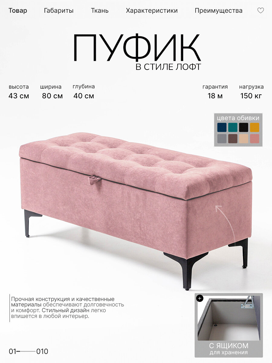 Банкетка-пуфик в прихожую с ящиком для хранения «Лонг», велюр розовый, 80x40x43. На кухню, балкон, офис и салон красоты.: сравнение цен, характеристики, фото, актуальное наличие и цены.