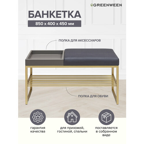 Банкетка золотая 850х400х450 RUBY BOX, велюр Light Blue, GreyBox: сравнение цен, характеристики, фото, актуальное наличие и цены.