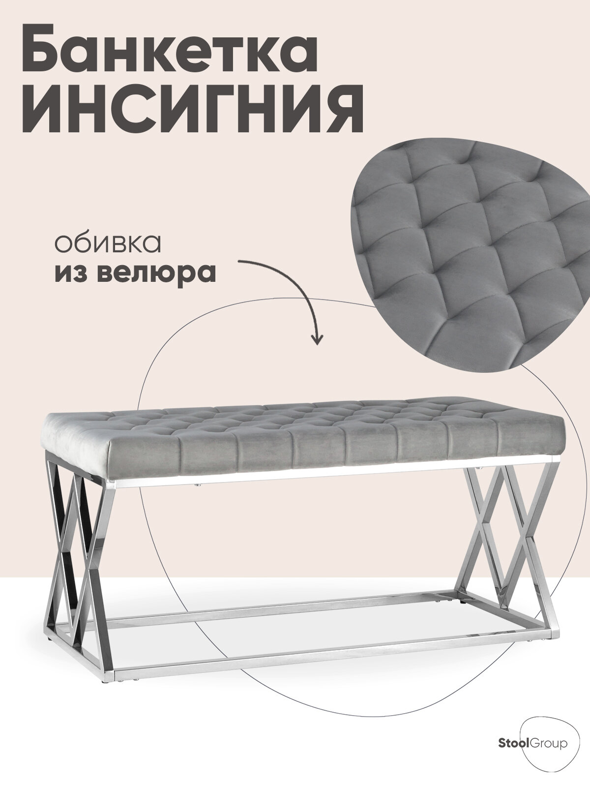 Купить Банкетка-скамейка инсигния, велюр серый, нержавеющая сталь серебро с доставкой по всей России. Банкетка-скамейка инсигния, велюр серый, нержавеющая сталь серебро: сравнение цен, характеристики, фото, актуальное наличие и цены.