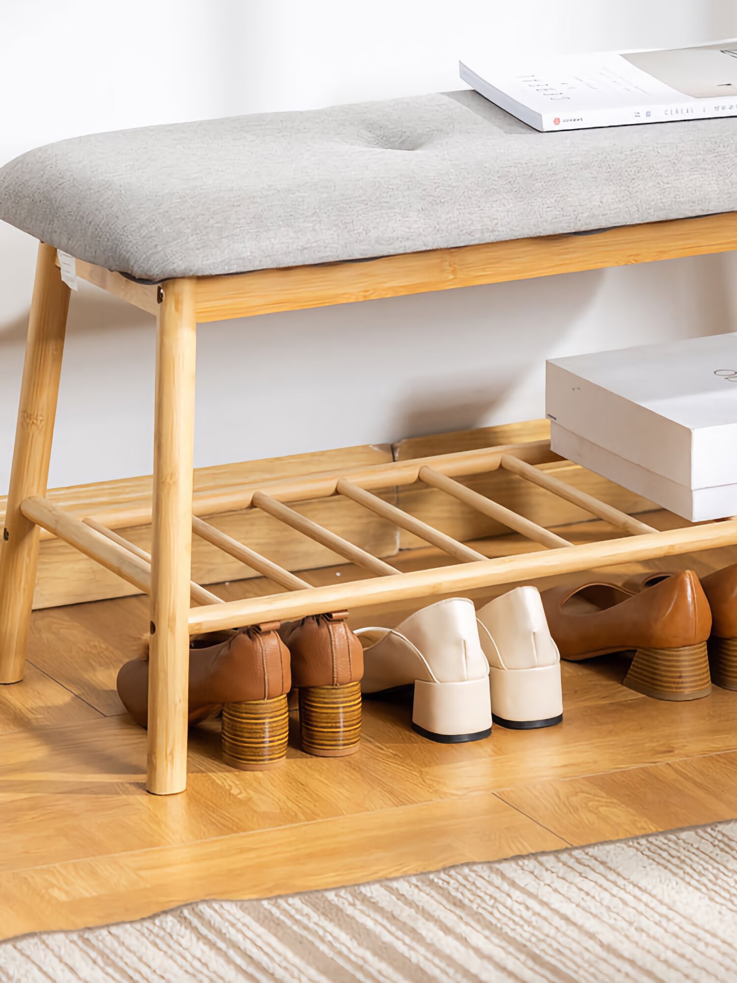Банкетка оснащена подставкой для обуви, что позволяет удобно хранить обувь, не занимая при этом много места. Подставка обеспечивает устойчивость обуви и предотвращает ее скольжение, что особенно важно при использовании банкетки в прихожей.