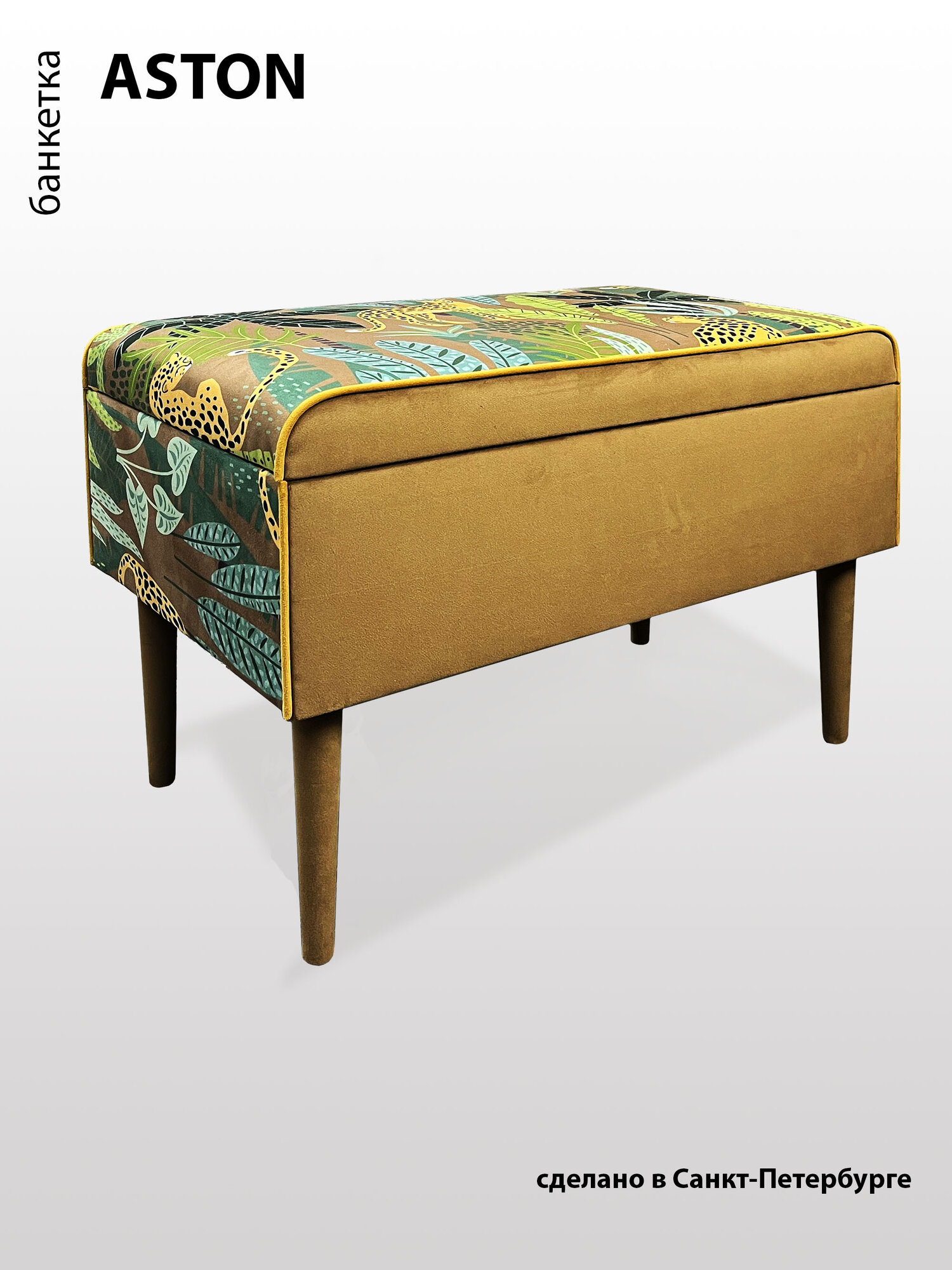 Яркая и стильная банкетка Aston обтекаемой формы с ящиком для хранения - одна из самых популярных моделей в нашей линейке. В банкетке сочетается эстетика внешнего вида, функциональность использования и прочность. Каркас банкетки сделан из березовой фанеры высших сортов, наполнитель- высокоэластичный ППУ высотой 40мм создает среднюю жесткость посадки, обивка- качественный мебельный велюр в сочетании с ярким и акцентным кантом. Просторное место для хранения с размером 67см х 37см х 16см позволит дополнительно разместить все необходимые вещи . Банкетка отлично подойдет в спальню, прихожую или на балкон. Высота березовых ножек- 22 см, фетровые накладки, которые уберегут ваш пол от царапин. Банкетка Aston- идеальное сочетание стиля, качества и функциональности.