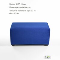 | Дополнительная информация | Банкетка в прихожую из антивандального велюра с ПВХ ножками (можно заменить на любые другие). В 37; Ш 36; Д 72. Благодаря своим габаритам отлично подойдет как: банкетка в спальню или пуфик для ног. Выдерживает нагрузку до 130 кг. |