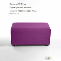 | Дополнительная информация | Банкетка в прихожую из антивандального велюра с ПВХ ножками (можно заменить на любые другие). В 37; Ш 36; Д 72. Благодаря своим габаритам отлично подойдет как: банкетка в спальню или пуфик для ног. Выдерживает нагрузку до 130 кг. |