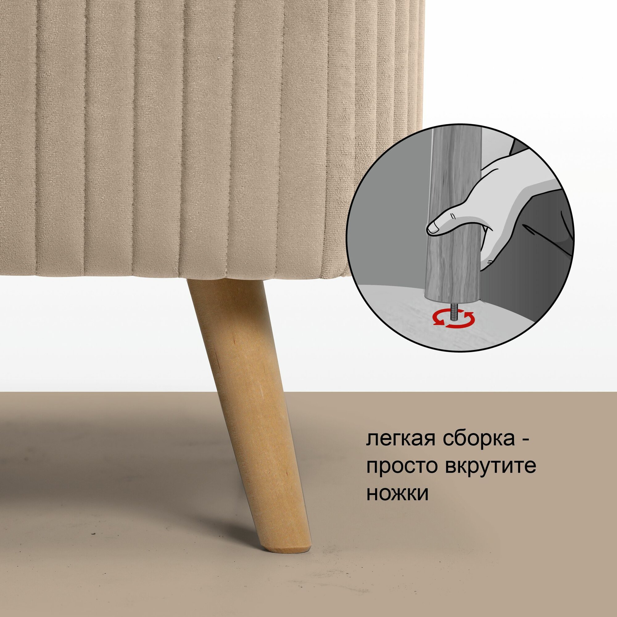 Основание изготовлено из массива берёзы высокого качества, поэтому легко выдерживает нагрузку до 120 кг. Деревянные ножки выполнены из березы премиум качества, легко вкручиваются и оснащены войлочными накладками на ножки, которые защитят пол от царапин и лишнего шума при передвижении стула-пуфа.
