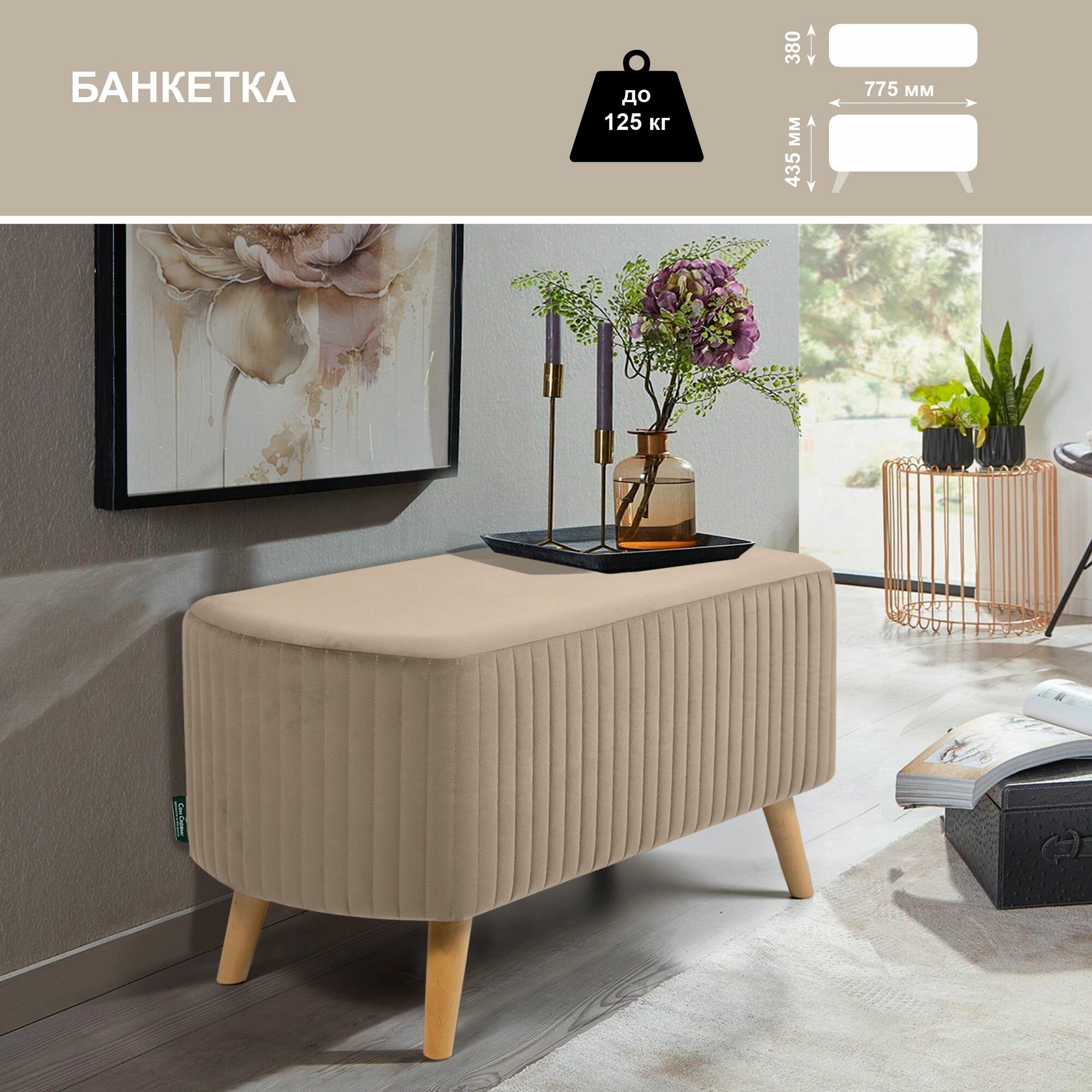 Цвет обивки изделия может отличаться на полтона от цвета на фотографии товара. Это связано с разной цветопередачей мониторов устройств, а также от партии поставляемой ткани. Габаритные размеры: высота - 43 см, глубина - 38 см, длина - 78 см.