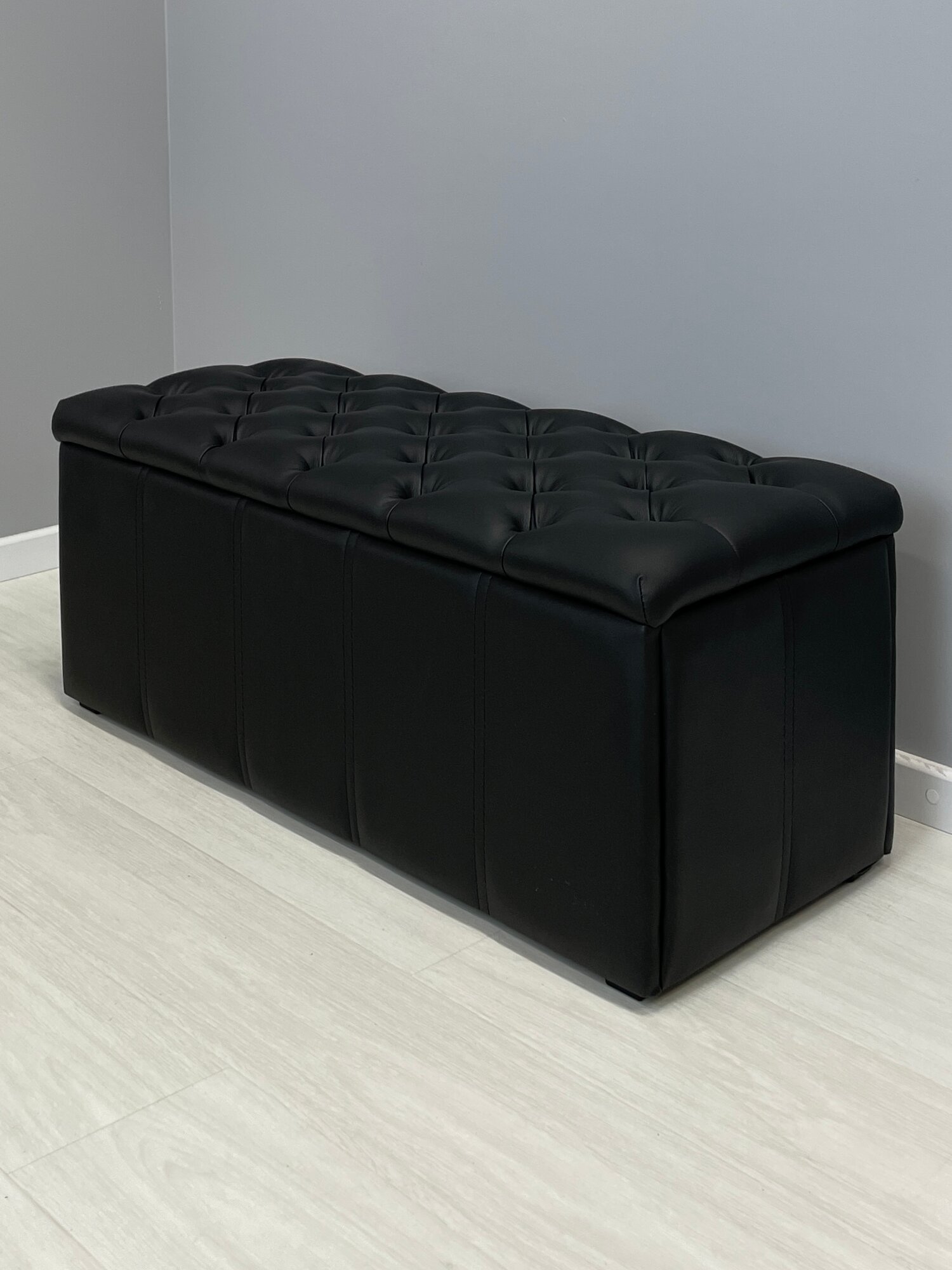Купить Банкетка (Экокожа) в прихожую, в спальню, обувница, для обуви. Пуфик в прихожую с ящиком, с сидением. Пуф черный с доставкой по всей России.