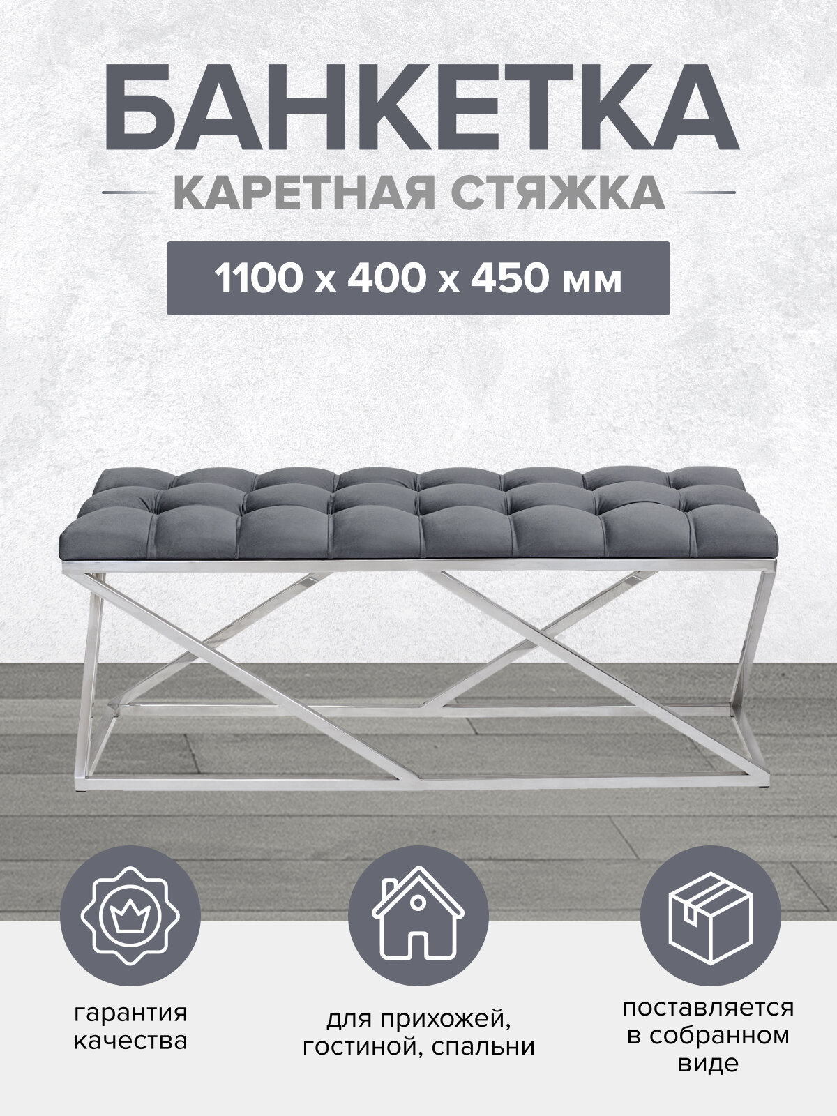 Банкетка ZUMA, н/ж сталь, Mouse Grey, каретная стяжка, 1100х400х450: сравнение цен, характеристики, фото, актуальное наличие и цены.