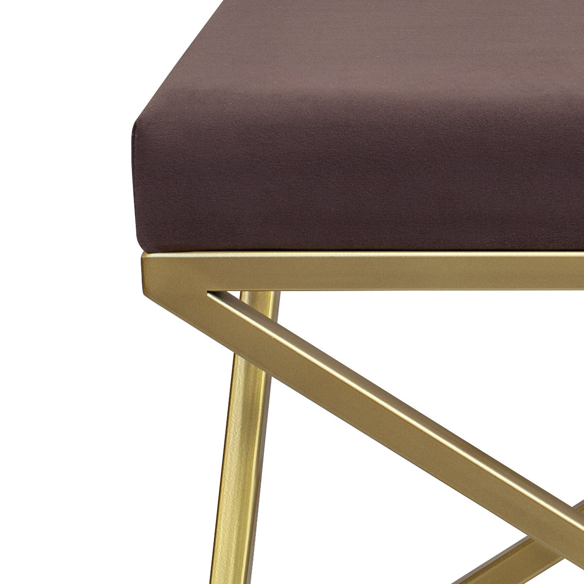 Эффектное сочетание бархатистой обивки и металлического основания банкетки понравится всем ценителям стильной и надежной мебели.