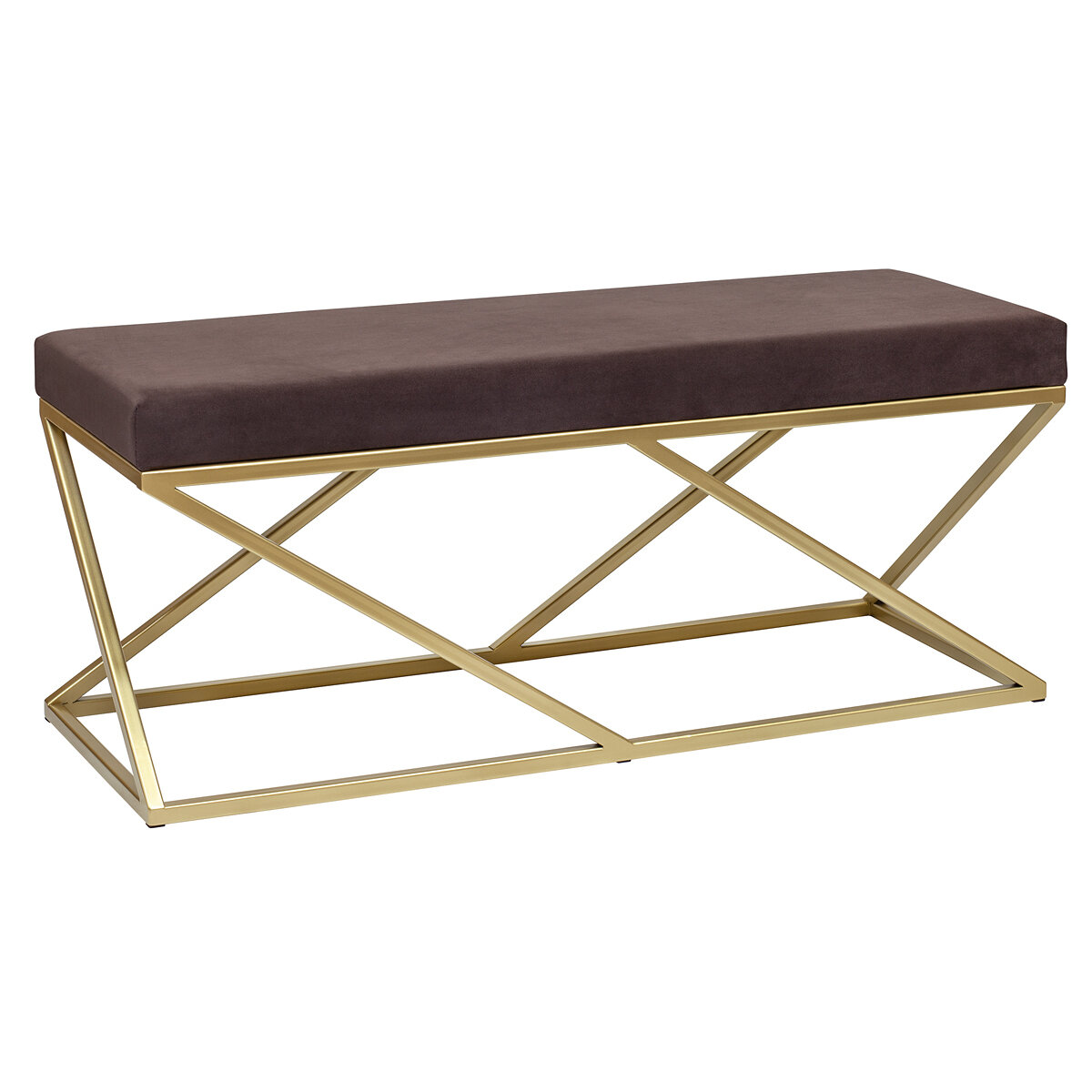 Банкетка ZUMA с золотистым каркасом из стали и мягким сиденьем привлекает внимание оригинальным дизайном и комфортной посадкой.