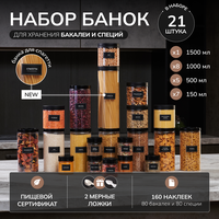 В комплект баночек входят: 7 шт по 150мл - для специй, 5 шт по 500мл и 8 шт по 1000мл для бакалеи, 1 шт 1500мл - для спагетти. Можно держать в холодильнике и морозильной камере. Не использовать в СВЧ и посудомоечной машине.