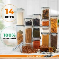 Контейнеры для сыпучих продуктов - 14 штук (4шт - 0.8л, 4шт - 1.4л, 4шт - 2.0л, 2шт - 2.8л)