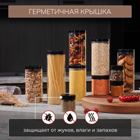 В комплект баночек входят: 6 шт по 500мл и 6 шт по 1000мл для бакалеи, 1 шт 1500мл - для спагетти. Можно держать в холодильнике и морозильной камере. Не использовать в СВЧ и посудомоечной машине. Использовать по назначению (для сыпучих продуктов), не нагревать. Набор банок для хранения — отличное решение для пряностей и бакалеи на вашей кухне, сочетание эстетики и комфорта! Контейнеры для хранения помогут вам упорядочить пространство и создать особую атмосферу. В них вы можете класть сыпучие продукты. Например, специи, сухофрукты, конфеты, макароны и крупы. Пластик, из которого они выполнены, является пищевым, не содержит вредных веществ. Он соответствует необходимым стандартам качества, экологичен, не имеет никакого запаха и абсолютно безопасен для применения. Несмотря на компактные размеры банок, которые могут поместиться в любом шкафу, емкости достаточно вместительные. Размещайте их в шкафу, на столе, на полке или стеллаже. Емкости легкие за счет материала, из которого они изготовлены. Для плотного прилегания удалите защитную полоску на крышке. Универсальный и стильный дизайн позволит применить их в любом интерьере. А минималистичность снизит уровень визуального шума. Кроме этого, стиль нашего набора для еды станет не только предметом для упаковки, но и украшением интерьера кухни. 80 наклеек с различными, уже напечатанными надписями, позволят разместить в баночках практически все. Водонепроницаемые наклейки не оторвутся при мойке не переживайте за сохранность емкостей. Радуйте нашим комплектом как подарком маме, девушке, жене, подруге. Универсальность - это возможность убирать в них не только продукты питания. Поместите их в ванне распределив косметические средства в них. Контейнеры можно использовать в мастерской или гараже для сохранения мелких деталей.