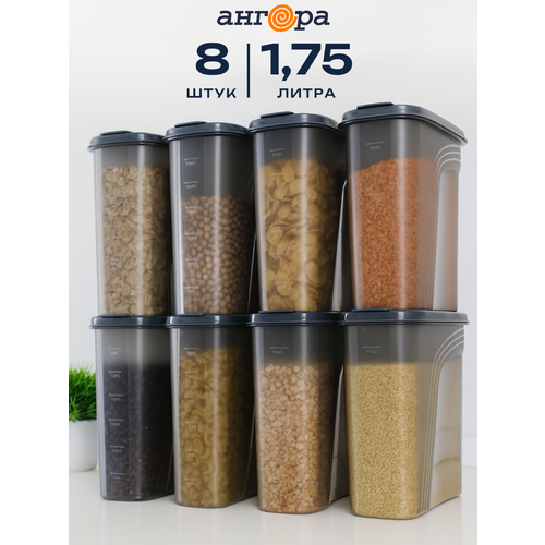 Купить Банки для сыпучих продуктов Ангора 8 шт контейнер для хранения для круп с мерной шкалой дымчатые серая крышка 1,75 л с доставкой по всей России. Банки для сыпучих продуктов Ангора 8 шт контейнер для хранения для круп с мерной шкалой дымчатые серая крышка 1,75 л: сравнение цен, характеристики, фото, актуальное наличие и цены.