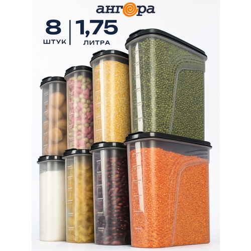 Купить Банки для сыпучих продуктов Ангора 8 шт контейнер для хранения для круп с мерной шкалой прозрачные серая крышка 1,75 л с доставкой по всей России. Банки для сыпучих продуктов Ангора 8 шт контейнер для хранения для круп с мерной шкалой прозрачные серая крышка 1,75 л: сравнение цен, характеристики, фото, актуальное наличие и цены.