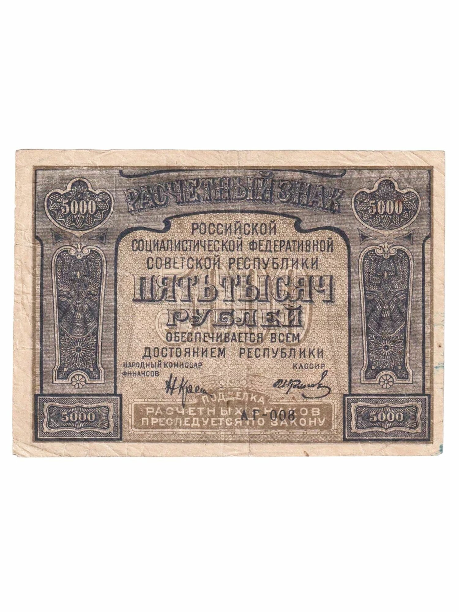 Банкнота Расчетный знак РСФСР 5000 рублей 1921 год (F) Pick 113а