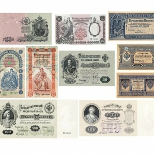 Банкноты царской России 1-500 рублей 1898-1909, набор копий копия арт. 19-9530
