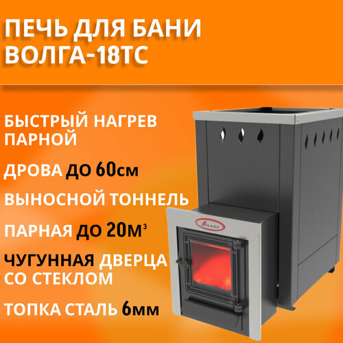 Банная дровяная печь Волга-18ТС, топка 6мм, дверца со стеклом, под навесной бак 45л слева или справа: сравнение цен, характеристики, фото, актуальное наличие и цены.