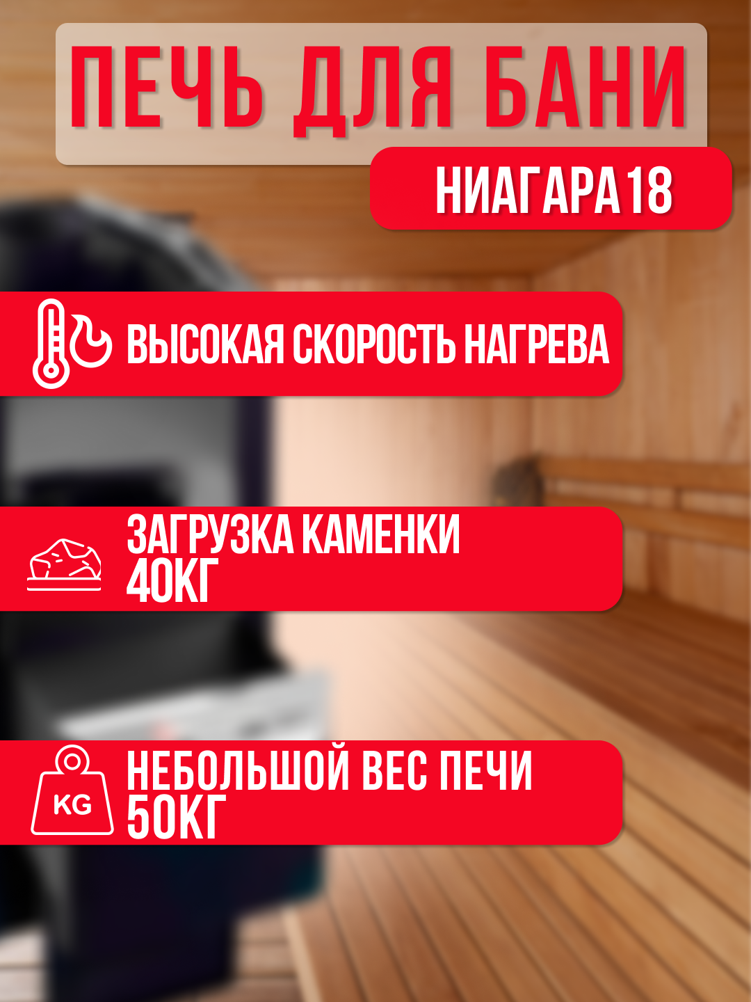 Купить Банная печь Ниагара 18 антрацит нержавеющая сталь, дровяная, до 18м3 с доставкой по всей России. Банная печь Ниагара 18 антрацит нержавеющая сталь, дровяная, до 18м3: сравнение цен, характеристики, фото, актуальное наличие и цены.