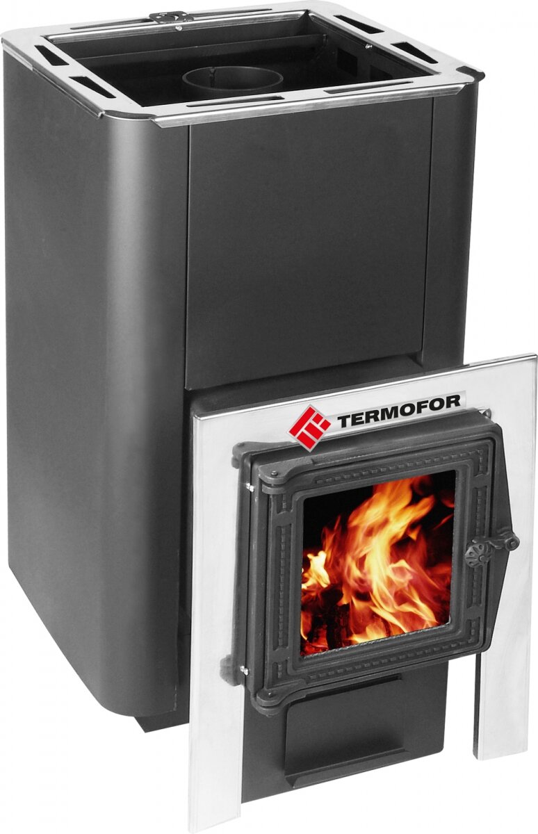 Купить Банная печь Олимп 20-26 чугун. дверца со стеклом, парогенератор с доставкой по всей России.