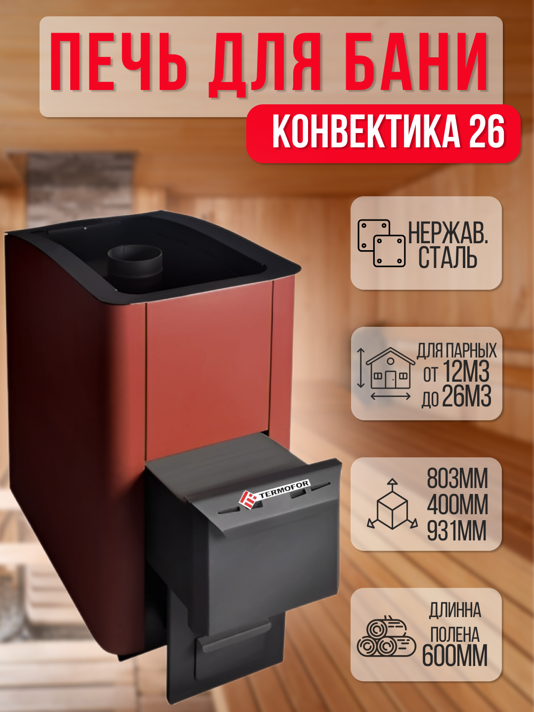 Банная печь Термофор «Конвектика 26 » Терракота, вынос топки: сравнение цен, характеристики, фото, актуальное наличие и цены.