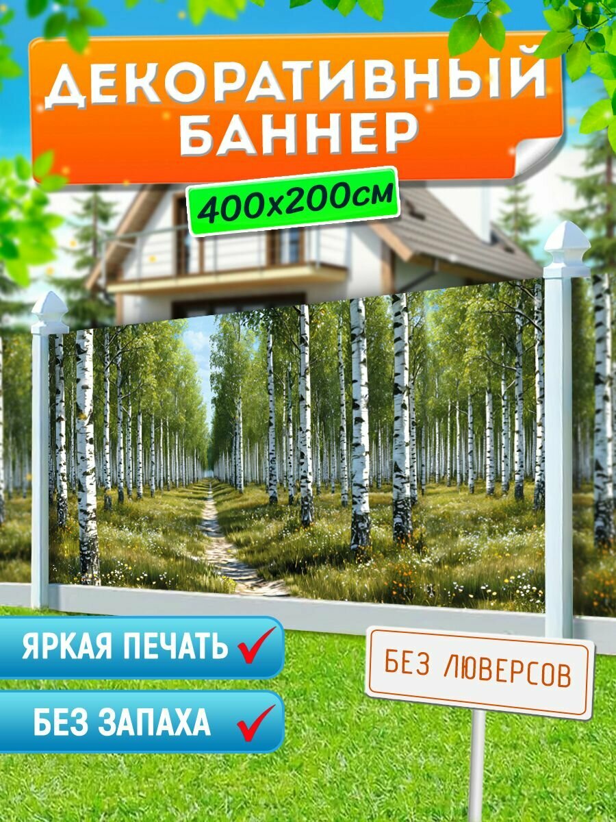 Декоративный баннер для забора размером 400х200 см - это отличное решение для оформления фасада вашего дома или дачи.