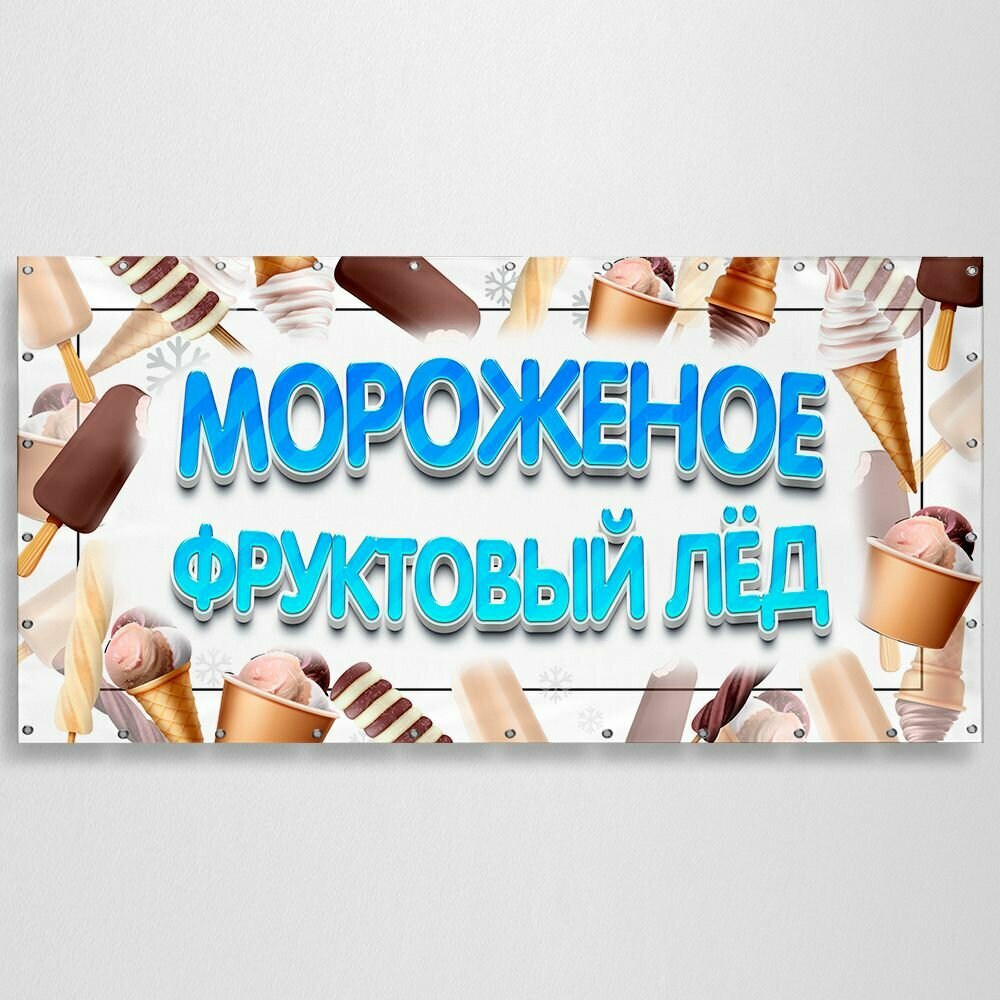 Баннер, рекламная вывеска "Мороженное / 1.5x0.75 м.