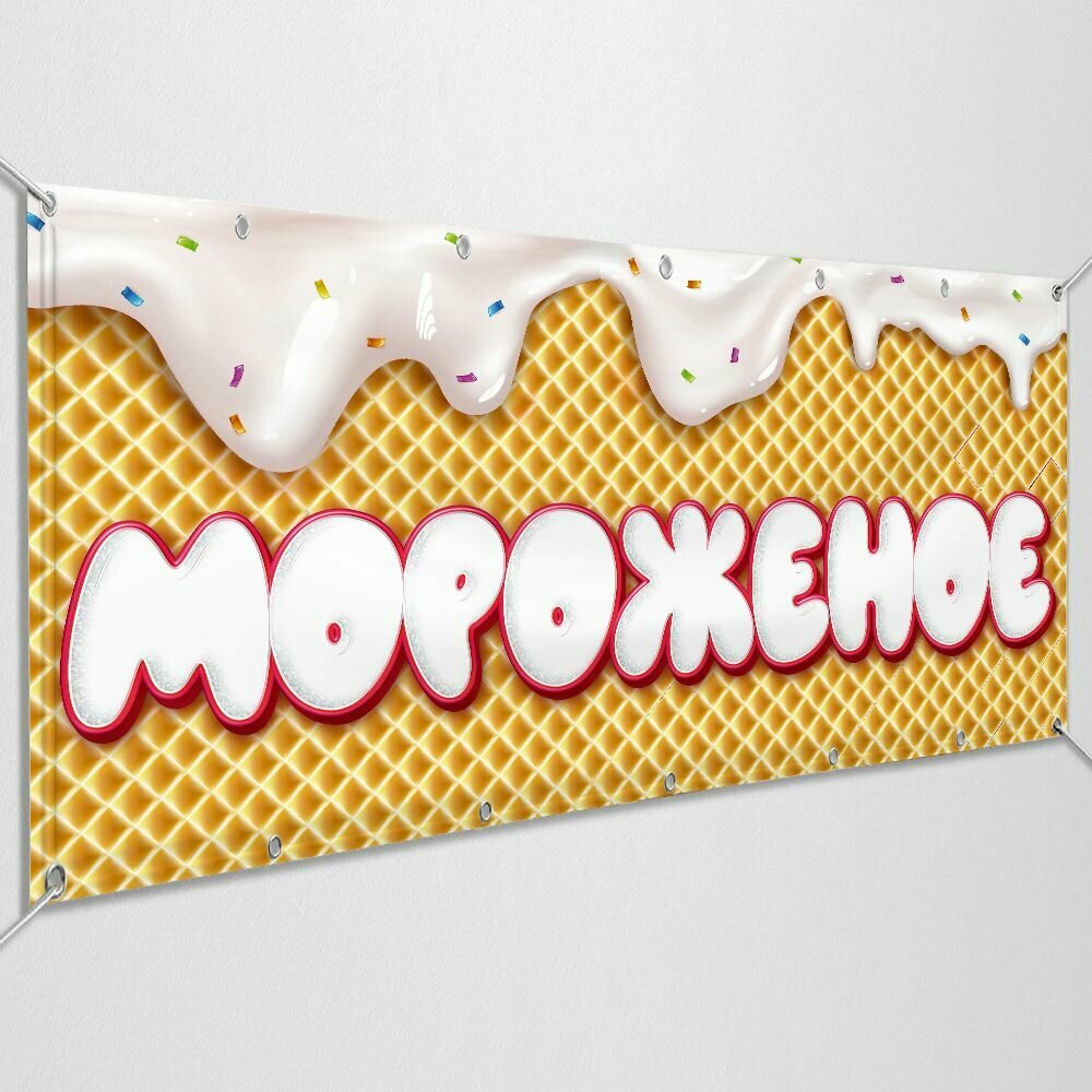 Баннер, рекламная вывеска "Мороженное / 1.5x0.75 м.