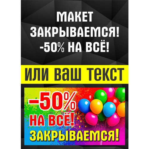 Баннер «Скидки 50%/Мы открылись/Закрытие магазина/Распродажа/Ликвидация товара/Сегодня акция», 50 см x 240 см: сравнение цен, характеристики, фото, актуальное наличие и цены.