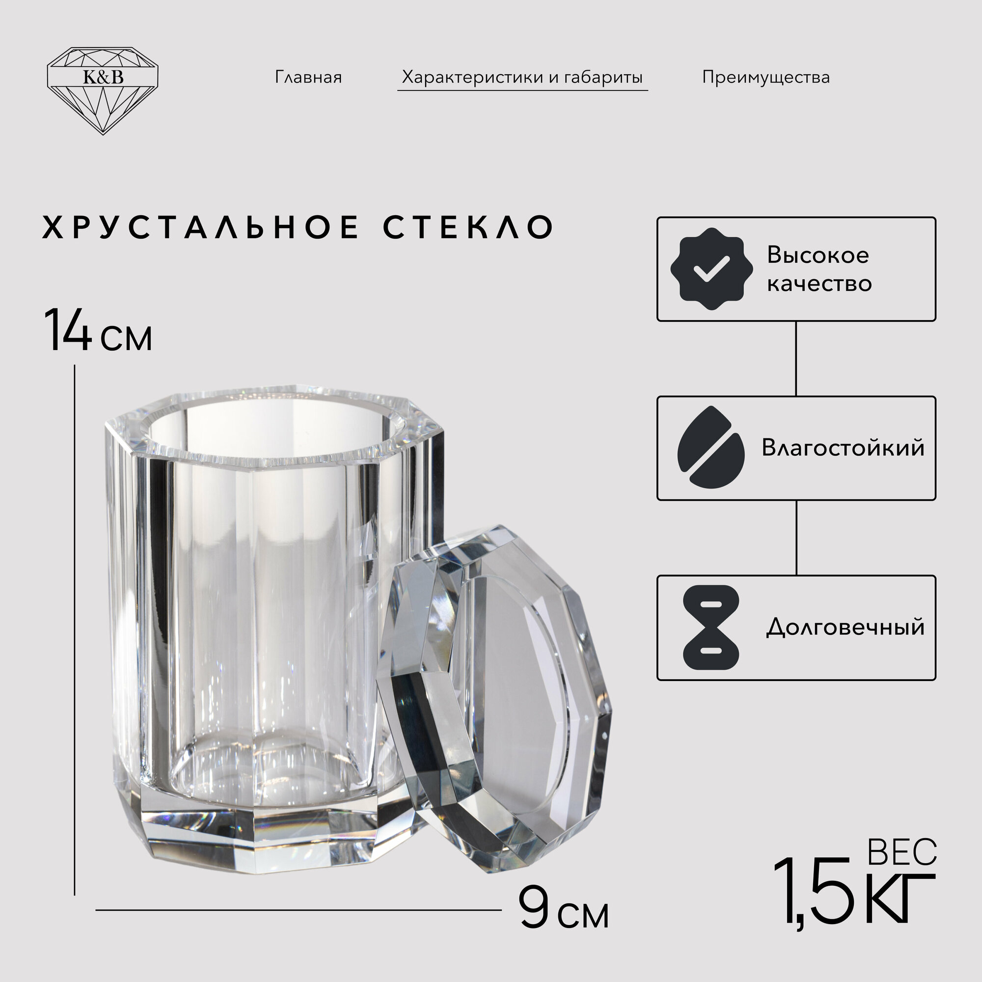 Купить Баночка K&B 9х9х14 см, с крышкой, цвет прозрачный хрусталь. с доставкой по всей России. Баночка K&B 9х9х14 см, с крышкой, цвет прозрачный хрусталь.: сравнение цен, характеристики, фото, актуальное наличие и цены.