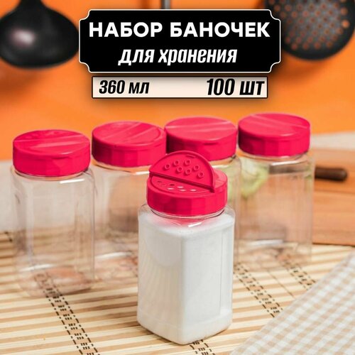 Баночки для специй 100 шт по 360 мл (красная крышка с дозатором): сравнение цен, характеристики, фото, актуальное наличие и цены.